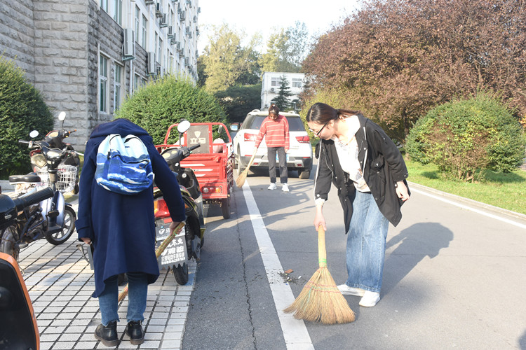 学子们携带劳动工具抵达理科楼集合,在负责人的带领下,按照事先分工到达指定区域,紧张而有序的开展各项工作。他们认真投入、分工明确,分组打扫教室的卫生死角,前往校园各非机动车辆停放处摆放车辆,清理绿化带中的枯枝杂草,对校园进行了地毯式排查,将垃圾进行集中清运。干净的教室与整齐的车辆构成校园内一道亮丽的风景线,默契的配合与辛勤的劳动彰显志愿服务者们认真负责的态度。他们一丝不苟的服务精神受到广大师生的一致好评。志愿活动在志愿者们合影留念中落下帷幕。