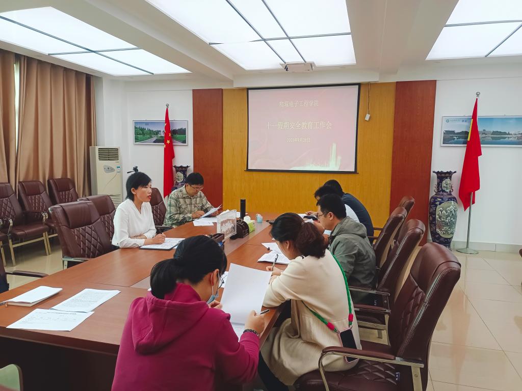 为确保学生在中秋节、国庆节度过一个安全、健康、愉快的假期。9月28日,加拿大28平台 于理科楼911会议室召开十一假期安全教育工作会,会议由学院党委副书记张丽主持,各班班主任参加。